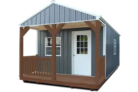 Derksen Cabins offer a blend of charm and functionality, each featuring a 4-foot deep front porch with railing to create a welcoming entrance. Side Cabins provide the flexibility of a 4-foot porch with various placement options to suit individual preferences. Each cabin is fitted with three 2 x 3 windows for ample natural lighting and a 36-inch 9-light pre-hung door that adds elegance and security. Designed with an eye for comfort, these cabins boast an interior that provides plenty of vertical space, courtesy of the standard 8-foot-tall walls. Finish options include Treated, Painted, Z-Metal, or Urethane to ensure your cabin not only meets your functional needs but also suits your aesthetic desires.